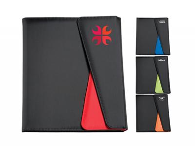 Promotional Tri Conference Folders with custom print make stylish and practical corporate gifts. They are great for conferences and conventions or for sales staff. Made from bl190T Polyester tri-folder with separate front pocket for document storage. These logo branded Business Compendiums come with lined A4 notepad, pen loops and internal business card pockets. Both compartments with magnetic closures. Liven up your next conference or corporate meeting with these coloured Document Folders. They make perfect executive gifts and these branded conference compendiums will leave a long lasting impression of your superior brand in the minds and hearts of your valued customers.