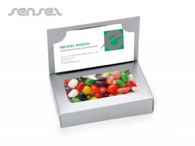 Other innovative corporate gift ideas that could be suitable to create brand awareness include these cheap promotional Full Colour Business Cards, quirky advertising gifts such as these Business Card Lolly Boxes (50g) or how about using one of our more bespoke custom made products such as these great quality Eco Corporate Jelly Bean Boxes (50g)?