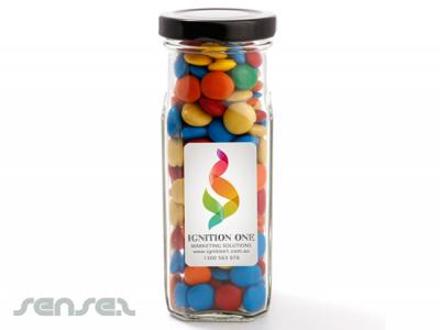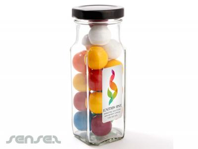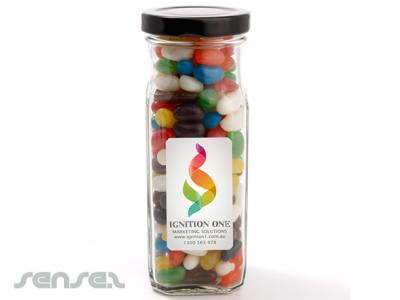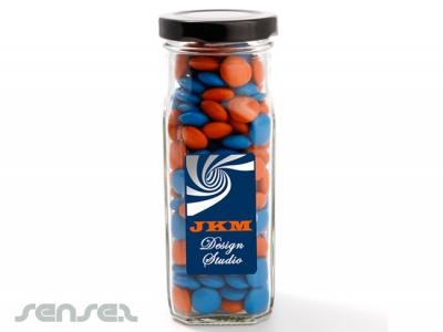 Other innovative corporate gift ideas that could be suitable to create brand awareness include these cheap promotional Corporate Coloured Mini Jelly Bean Jars (100g), quirky advertising gifts such as these Mini Glass Confectionery Jars or how about using one of our more bespoke custom made products such as these great quality Heart Candy Jars (80g)?
