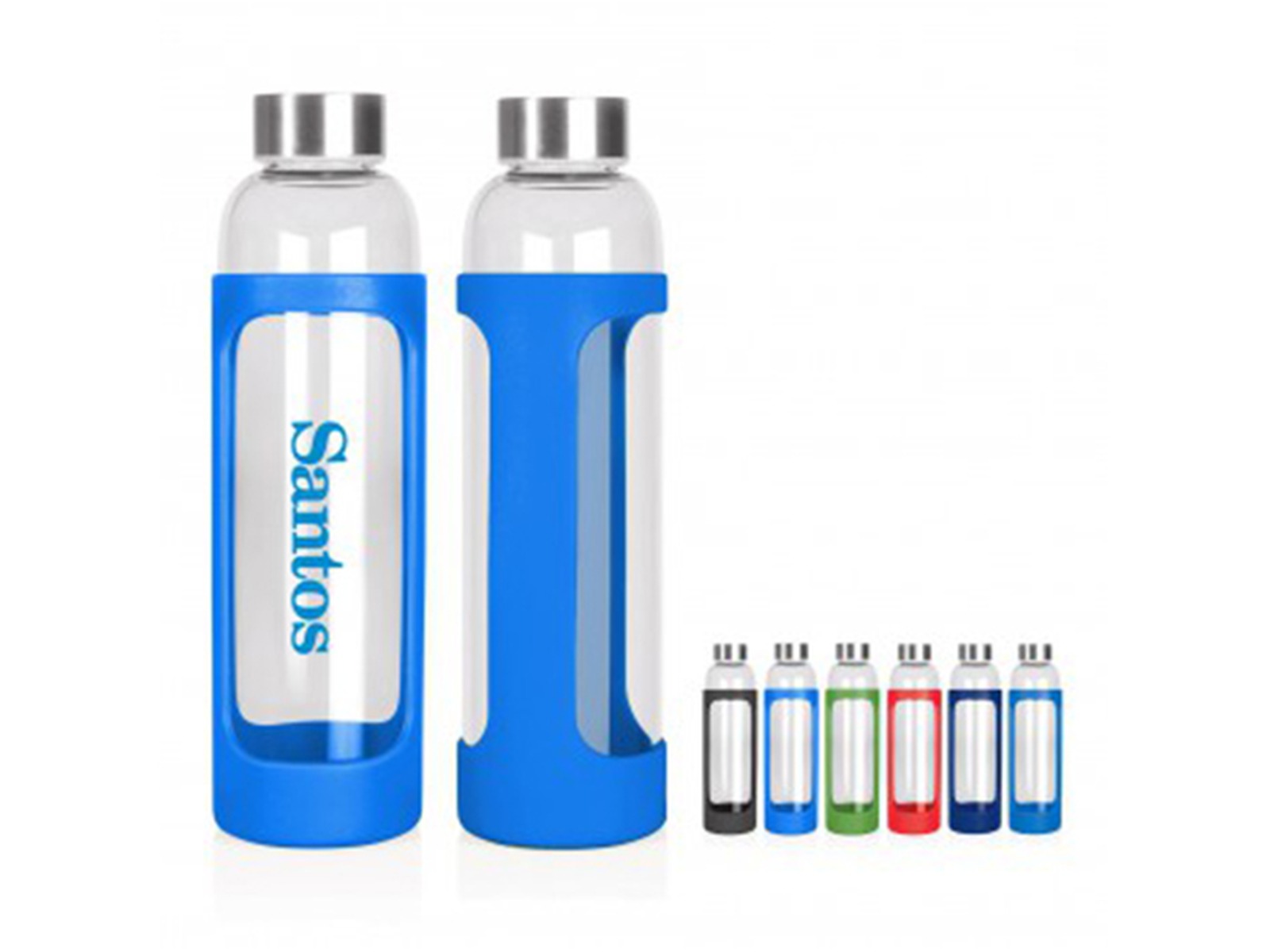 Incorporate branded glass drink bottles with sleeves (600ml) in your next promotional campaign